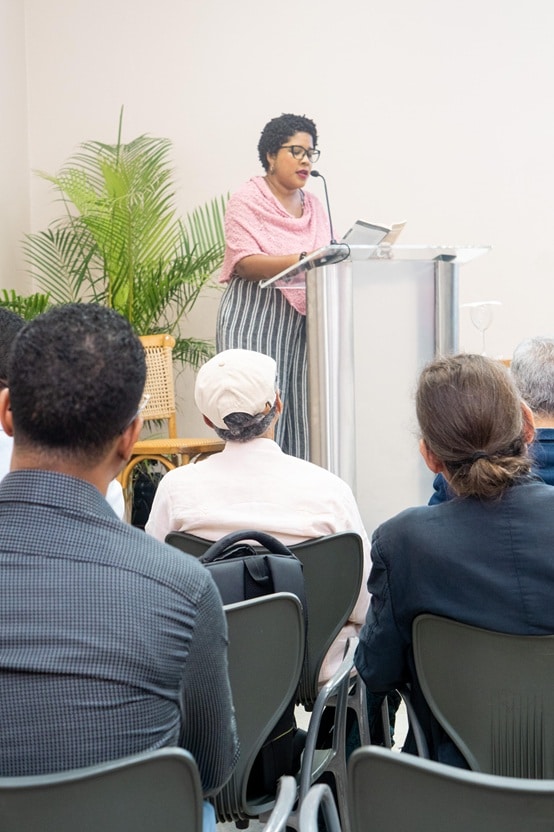 No hubo pausas ni prisas, en el cambio de voces. De inmediato fueron llamados Iky Tejada, de Moca; quien escribe desde Santiago; la francesa Sylvie Kandé; Augusto Bueno, de Montecristi; Faustino Medina, de Santiago Rodríguez, pero residente en Santiago; y el palestino Fakri Ratrout, quien marcó con su testimonio de viaje y conmovió hasta el llanto con sus relatos de muerte. Tanto Kandé como Ratrout leyeron en francés y árabe, respectivamente, traducidos al español con ayuda colegas.