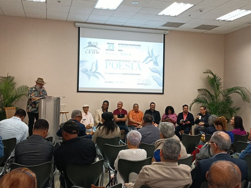 La delegación de Santo Domingo llegó en el tiempo de la poesía, comandada por Mateo Morrison, presidente de la Fundación Espacios Culturales que promueve este festival anual. Eso dio espacio a que los locales adobáramos con café y abrazos los primeros minutos del encuentro, aprovechando para ponernos al día sobre nosotros, las noticias, el arte y otros asuntos mayores en el vestíbulo del Centro León, sede oficial del recital matutino en Santiago.