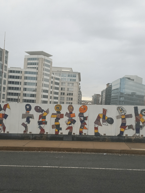 Pasando por Baltimore ya había sol. Según el reloj, faltaba menos para conocer la capital más poderosa del continente. Eso era lo de menos. Lo de más era abrazar a Altagracia, la colega y amiga. Nos íbamos controlando los tiempos para que no tuviese que esperar mucho porque en el centro de DC no hay casi parqueos. Los árboles desnudos dieron paso a las fachadas de calles y negocios del downtown, pequeñas, pintorescas y variadas en color, incluso un muro adornado con materiales reciclados que me recordó al programa Ciudad Reciclada del Centro León, justo antes de girar hacia el parqueo de autobuses de Union Station. Decir que hacía frío es redundante al extremo.